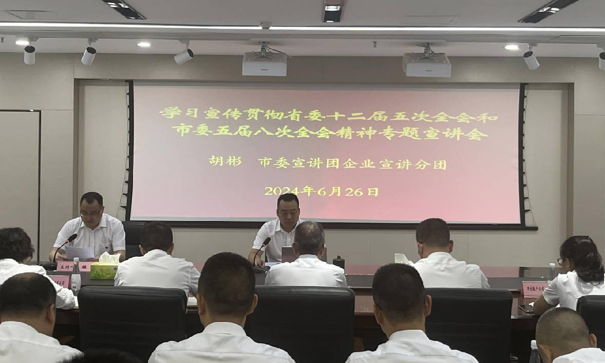 為深入學(xué)習(xí)宣傳貫徹省委十二屆五次全會和市委五屆八次全會精神,2024年6月26日市委宣講團企業(yè)宣講分團成員胡彬到市產(chǎn)業(yè)集團開展省委十二屆五次全會和市委五屆八次全會精神專題宣講。市產(chǎn)業(yè)集團所屬二三級企業(yè)領(lǐng)導(dǎo)班子、集團本部全體干部職工共計50余人參加專題宣講。