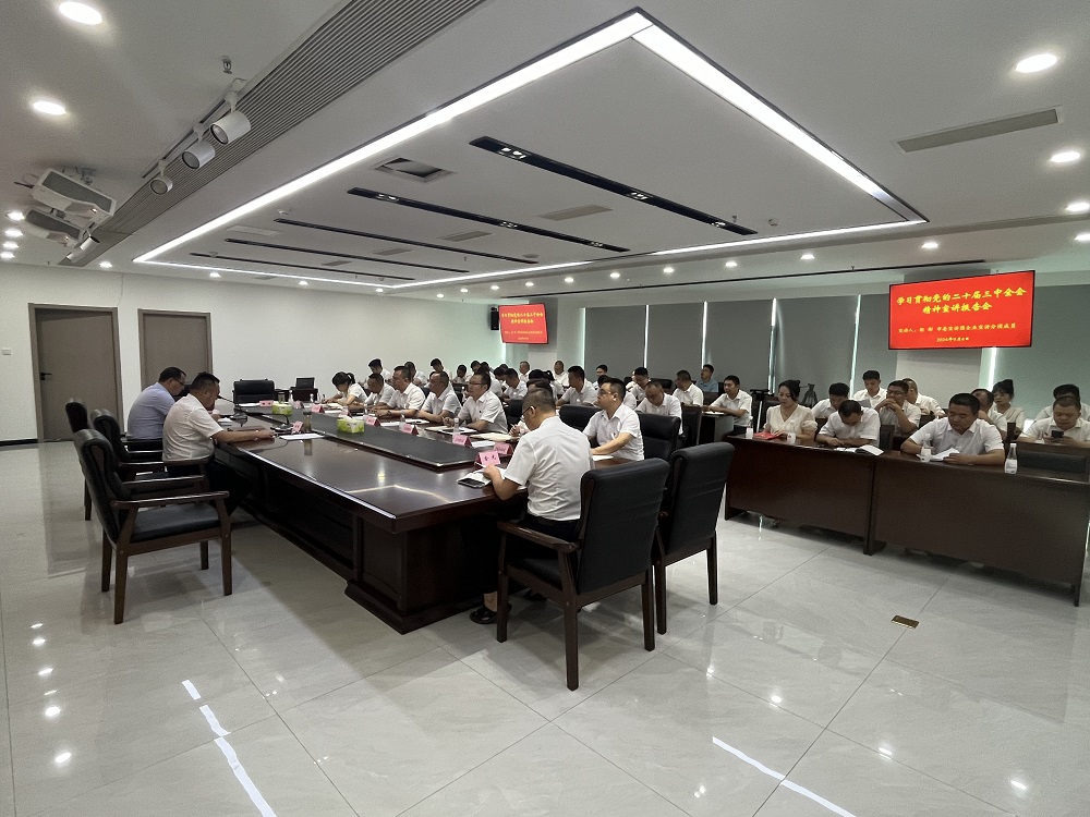 9月4日, 市產(chǎn)業(yè)發(fā)展集團(tuán)召開學(xué)習(xí)貫徹黨的二十屆三中全會(huì)精神宣講報(bào)告會(huì),全會(huì)宣講分團(tuán)成員從“深刻把握黨的二十屆三中全會(huì)的重大意義”“深刻把握進(jìn)一步全面深化改革的重大舉措”“深刻把握全會(huì)對國資國企改革發(fā)展實(shí)質(zhì)要義”等六個(gè)方面對黨的二十屆三中全會(huì)精神進(jìn)行系統(tǒng)闡述。