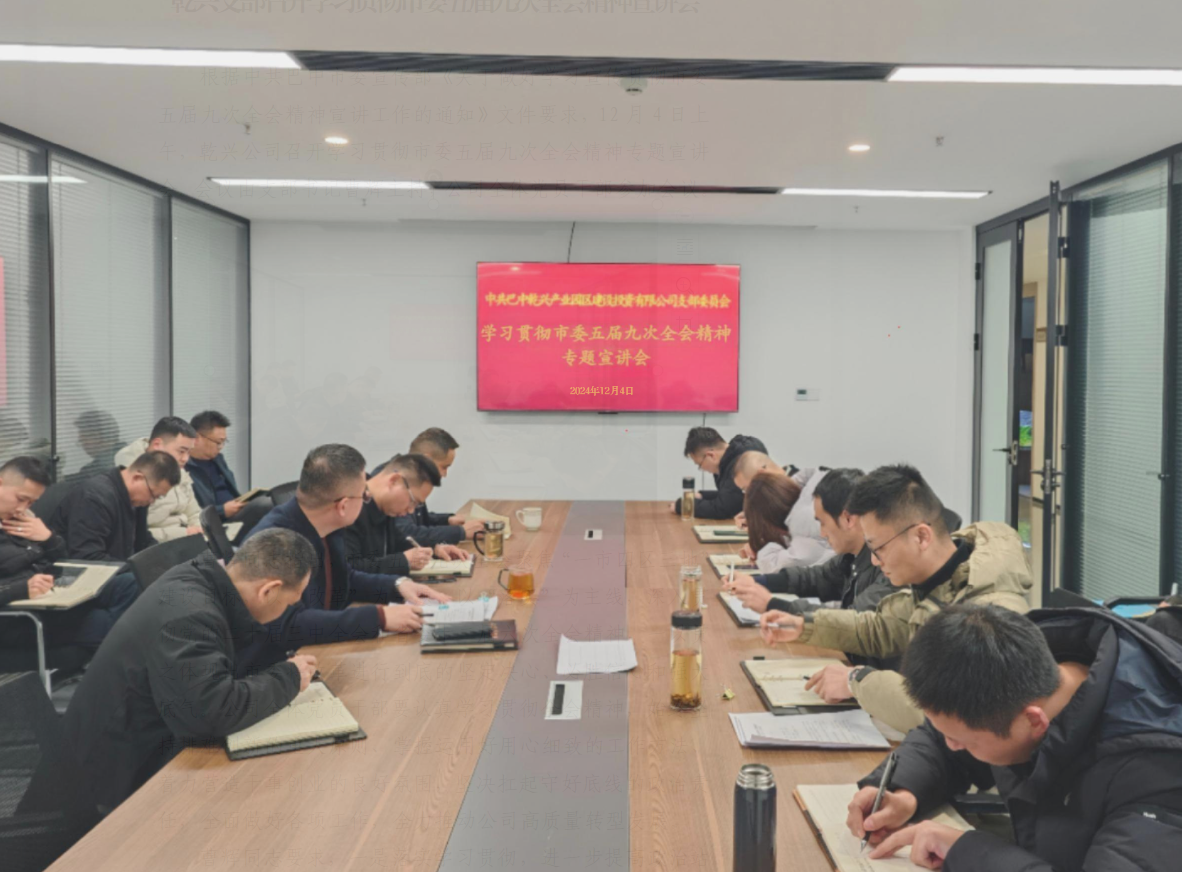根據(jù)中共巴中市委宣傳部《關(guān)于做好學(xué)習(xí)宣傳貫徹市委五屆九次全會(huì)精神宣講工作的通知》文件要求,12月4日上午,乾興公司召開(kāi)學(xué)習(xí)貫徹市委五屆九次全會(huì)精神專(zhuān)題宣講會(huì)。會(huì)議由支部書(shū)